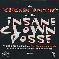 "Chicken Huntin'" is a single by hip hop duo Insane Clown Posse, from their second studio album, Ringmaster. The "Slaughter House Mix", from the group's third studio album, Riddle Box, has become one the duo's most popular songs.[1][2]
