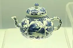 Ming era porcelain teapot with enamel overglaze.