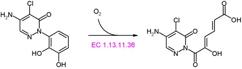 Chloridazon-catechol dioxygenase (EC 1.13.11.36) is an enzyme that catalyzes the chemical reaction