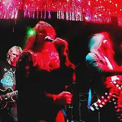 The band's musical style has been associated with the new wave of British heavy metal movement.[1][3][4] According to Pitchfork Media writer Grayson Currin, the band's second album, Possession, combined influences from "proto-thrash, grandiose classic rock, and smoky doom."[9] The band was compared to British heavy metal acts Diamond Head and early Iron Maiden.[10]