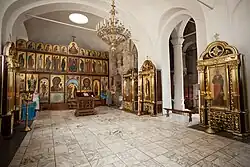The church is located at the foot of the Mitridatskaya steps (there are 432 steps), which rises to the Mitridat Hill where there are a series of ancient sites. St John's Baptist Church is one of the oldest Christian churches built in the Byzantine architecture style; it was built during the Khazar era in the 8th century.[7] An inscription in the older part of the church reads: "Here lies the servant of God Kyriakos, a son of George, a grandson of Vindira. He died on the month of June 3, induction 10th, in the year 6265 from Adam".[7] This has been interpreted as the year 757 AD. During the period of the Soviet Union, the church was used as a gem museum.[8] Following the restoration works carried out in the 1980s, church services have been resumed since 1990.[7] In 1982, Tatjana Ivanovna Makarova published an article, Archaeological dating of the John the Precursor church in Kerch.[9]