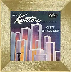 After a year's hiatus from the recording of Graettinger's works, both producer Lee Gillette and Stan Kenton were able to cajole a reluctant Capitol Records management into assembling a 1951 version of the 'Innovations Orchestra' to record.[12] The group's studio time on December 5 and 7 was entirely devoted to Graettinger's music; primarily the four movement City of Glass suite (add "A HORN" from This Modern World). This was the rewritten version of a composition first scored for Kenton's Progressive Jazz Orchestra in 1948. It was premiered, and received its sole performances, at the Civic Opera House in Chicago on April 20 and 21, 1948, with the composer conducting[13] (the reception of the premiere by public was quite indifferent).[14] Olivier Messiaen's "Mode de Valeurs et Dintensites" (1949) comes to mind with the first opening music of Graettinger's Entrance Into The City (in two parts). The 'jagged edges' (akin to Anton Webern) and use of free dissonance by each composer while (simultaneously) writing across the Atlantic from one another are notable. In essence, the same effect was being achieved with little to no knowledge of one another's work. The second movement (The Structures) is quite effective to the level of Incident in Jazz recorded almost two years before. Both are well balanced works successfully set in jazz 'grooves' juxtaposed to tonal dissonance like George Russell's groundbreaking 1949 "A Bird in Igor's Yard" (also recorded by Capitol during that time). The third and last movement is much more romantic in approach; almost to the point of imagining it being a set of opera scenes from Richard Strauss's Elektra or Alban Berg's Wozzeck (Graettinger was long a fan of opera and ballet).[15] There is some notable lyrical playing by members of the Kenton orchestra in this final movement.