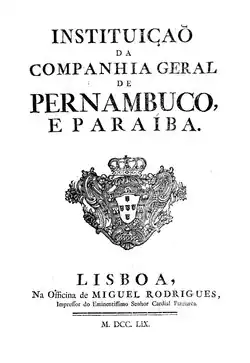 The General Company of Pernambuco and Paraíba (Portuguese: Companhia Geral de Pernambuco e Paraíba) was a privileged monopoly company created by the Marquis of Pombal in the second half of the 18th century in Portugal.[1][2][3]