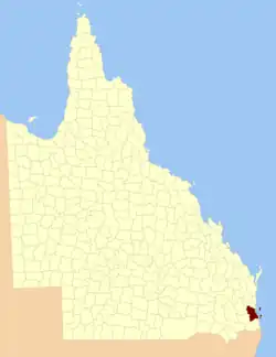 Stanley was formerly a county in New South Wales between the establishment of Brisbane in 1826, and the formation of Queensland as a separate colony in 1859, and was officially established by proclamation on 27 February 1843. It was generally understood (though only somewhat formally defined) to include the land between the 27th and 28th parallels of latitude, Moreton Bay and the western ranges, covering an area of 1,724 square miles (4,470 km2 ).[ 2] In 1852 it had a population of 2,000. Wheat , coffee , cotton and tobacco were described as being important crops. By 1863, the county had contracted to its present boundaries.