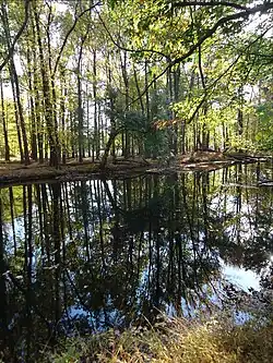 The Cranford Riverwalk and Heritage Corridor portion of the Rahway River Parkway begins at the parklands near where Orange Avenue meets Springfield at the Cranford Canoe Club and follows the Rahway River on its path southbound to the Williams-Droescher Mill from the early 18th century. At Heritage Plaza at the southwest corner of South Avenue and Centennial, the century-old stone walls and iconic stone columns winding through woodland to Droescher's Mill are still in place, but are in need of restoration and preservation.[63][64] Future plans include repairing the Kaltenbach Estate skating pond, the Victorian footbridge and Squire Williams Picnic Grove at Droescher's Mill Park.[65]