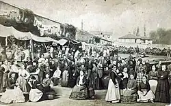 Immediately after the Bloody Week and the repression of the Paris Commune, the state had no objection to the trade in images, which enabled it to consolidate its victory over the Communards,[54] to the point that Daniel Salles described Appert as "Thiers's official photographer".[37] The images in Crimes de la Commune were widely distributed, particularly to a popular audience.[55] Several photomontages inspired by, or even differing from, Appert's are registered with the legal deposit office, including Pierre-Hippolyte Vauvray's Martyrs de la Roquette.[56]