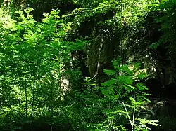The Craig Mill ruins from below Linn Spout. This mill was associated with Kilwinning Abbey, together with Garnock and Sevenacres mills.[17]