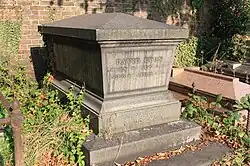Lyon died on 8 April 1872, aged 77, at his winter residence in Nice, without his family, as a delay in telegrams meant his family did not know that he was ill.[9] He is buried against the north wall of Brompton Cemetery in London towards the north end. His grave sits next to that of British naval officer Admiral Sir Charles Fremantle, namesake of Fremantle, Australia.