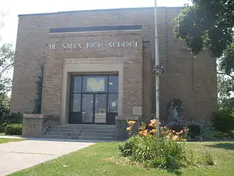 DeSales High School was a Catholic school established in 1912 in the Diocese of Rochester. It was located in the northern sector of Geneva, New York. DeSales High's mission was "to provide an academically excellent education in an intimate, faith-filled community". It was the only Catholic high school in the Finger Lakes region. DeSales closed on July 31, 2012 by the Diocese of Rochester due to financial struggles and decreasing enrollment. The final Senior class (the class of 2012) graduated in the centennial of the school.