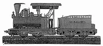 On 20 November 1886,[4] or according to other accounts as early as 20 August 1886, a trial run was held in the presence of Li Hongzhang and other dignitaries including the Chairman of the Salt Tax Commission. This had been prepared by Gaston Galy.[5] In the afternoon between 3:00 and 4:00 p.m. the Chinese politicians were received by a large group of foreigners and foreign consuls. The locomotive, which was decorated with flags of China, France and England, pulled 1st, 2nd and 3rd class carriages and a baggage car.[6] The trial run was successful.[6] The train took less than 8 minutes to complete the winding route.[7] The fact that Li Hongzhang had taken part in the demonstration was seen as a positive sign for the future.[6]