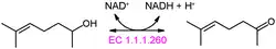 Reduction of NAD+: NAD+ + 2H+ + 2e− ↔ NADH + H+