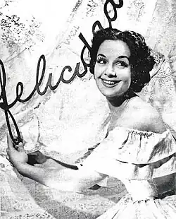 That same year, Garcés formed her own theatrical company and in March premiered the first play of Homero Manzi and Ulises Petit de Murat, La novia de arena, at the Odeón Theater. In her troupe, besides herself were: Alba Castellanos, Orestes Caviglia, Margarita Corona, Enrique Alvarez Diosdado, Alita Román, Domingo Sapelli, and Milagros de la Vega.[18] Having completed a run of the play, her company continued at the Odeón and performed her "farewell" theatrical production in Argentina, Claudia by Rose Franken. After the performance, due to the political situation with Juan Peron's government, she and her husband planned to leave Argentina.[19] But, they stayed and in 1946, she performed La eterna ninfa at the Odeón[20] and filmed Rosa de América directed by her husband with Orestes Caviglia, Antonia Herrero, Elsa O'Connor, among others.[21] She earned praise for her roles in El gran amor de Bécquer (1946) and El hombre que amé (1947)[11] and in 1948, she performed in the play El otro yo de Marcela which was so successful that it led to a film by the same name two years later,[20] in which she sang and danced.[11]