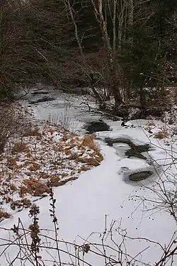 Hemlock trees are very common in the vicinity of Devil Hole Run. There are herbaceous openings of small size along the stream. These openings are likely to contain wet meadows, with various sedges, shrubs, and wetland plants.[4]