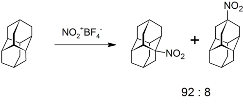 Diamantane can be nitrated by treatment with nitronium tetrafluoroborate (in nitrile-free nitromethane) to give a mixture of two isomeric nitrodiamantanes.[9]