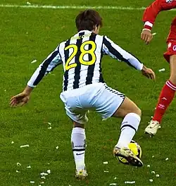 Diego made his Juventus debut against the Korean side Seongnam, a game they won 3–0. In the first half, Diego made the pass to Mauro Camoranesi, whose pass followed up to a goal. Diego then scored in the second half and was subbed out at the 60th minute.[11] On his Serie A debut, he assisted Vincenzo Iaquinta's goal from a set-piece.[12] In the second fixture of the campaign, Diego recorded his first Serie A goal, scoring twice in Juventus' 3–1 victory against Roma on 30 August 2009. He also scored goals against Bologna, Fiorentina and Napoli. One of his most noted assists was his backheel to Alessandro Del Piero's goal against Genoa. He has also scored in the 2010 TIM Trophy against Milan.[13]