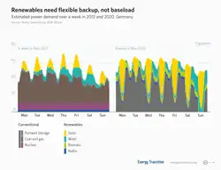 Conventional power sources like gas, coal and some nuclear may be considered dispatchable to varying degrees, while most renewable energy sources are not.[1][2] Sometimes though, coal & nuclear can be classed as non-dispatchable, due to the slow shutdown / startup times of their plants.[3]