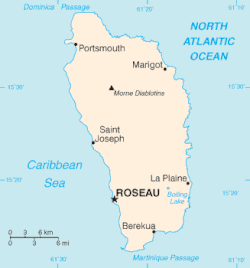 ![]() Location of Dominica (circled in red) in the Caribbean | |