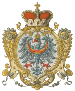 The coat of arms of Carniola dates back to the 13th century, when it most probably evolved as a combination of the coats of arms of the Bavarian counts of Andechs in the Duchy of Merania (eagle) and the Rhenish House of Sponheim in Carinthia (red-white checkerboard). The eagle is also featured in the seal of King Ottokar II of Bohemia in his capacity as ruler of the Carniolan march in 1269. In 1463 Emperor Frederick III, having prevailed against the claims raised by his brother Albert VI of Austria, added the Imperial crown to the eagle and replaced the white in the shield and the checkered crescent with gold. In 1836 Emperor Ferdinand I of Austria restored the original white color to the shield and recognized the white-blue-red combination as the official Carniolan color scheme.