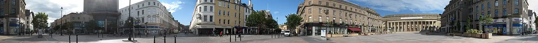 Until the Industrial Revolution, the current City Centre represented the full extent of the City of Dundee, Scotland.[1] Now roughly encircled by the A991 dual carriageway (incorporating the Marketgait), the city centre is now the main shopping and commercial district. Unlike the city centre of Glasgow, many of the city centre's streets (especially in the southern and eastern quarters) are not built on a grid plan and in that way have more in common with the street plan of the Old Town of Edinburgh (although most buildings in Dundee's city centre date from the 19th century or later).