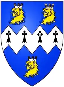 ![]() ![]() Wallop arms: Argent, a bend wavy sable Crest : A mermaid holding in the sinister hand a mirror and in the dexter a comb all proper supporters : On either side a chamois or wild goat sable | |