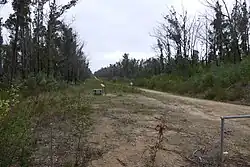 Continuing on from Partellis Crossing the trail continues for several kilometres through mixed forest and farmland, and then past the former timber mill site of Waygara. Native vegetation is reclaiming this site but some signs of the former mill are visible such as a shed, an incinerator stack, and former mill houses.[7] The former Waygara railway station was also in this location, however little sign remains of it. The trail again starts heading back towards the highway and soon crosses Simpsons Creek and then Simpsons Creek Rd[2] through more forested areas which preserve a significant amount of biological diversity from early and pre-European settlement times.[7]