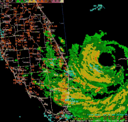 ![]() Hurricane Jeanne making landfall on Hutchinson Island near peak intensity on September 25  | |
