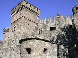 Fénis Castle (Italian: Castello di Fénis, French: Château de Fénis) is an Italian medieval castle located in the town of Fénis. It is one of the most famous castles in Aosta Valley, and for its architecture and its many towers and battlemented walls has become one of the major tourist attractions of the region.