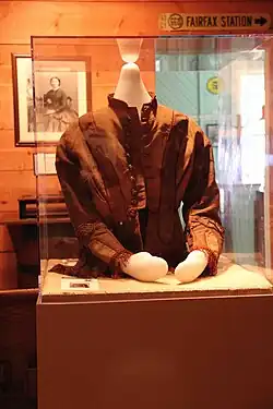 Clara Barton bodice loaned from the Clara Barton National Historic Site to the Fairfax Station Railroad Museum for use during the 2012 Civil War Sesquicentennial, August–September, 2012.