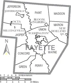 Fayette County was formed on March 1, 1810, from portions of Highland and Ross Counties. It was named after Marie-Joseph Motier, Marquis de La Fayette, a French general and politician who took the side of the Colonials during the American Revolutionary War and who played an important role in the French Revolution.[5]