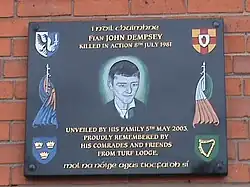 A plaque in memory of Fian John Dempsey – the last member of the organisation to have been killed on active service