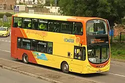 In January 2014, Firstgroup launched the "city red" brand in Southampton, with £100,000 spent on refurbishing 14 Wright Eclipse Urbans with wood effect floors and leather seating.[7] Later in August 2014, the company invested £2.7m into 18 buses on routes 2 and 11, as well as a further investment of £1.6m for 10 buses on route 7.[8][9]