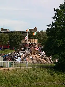 Tricolours have been burned on Loyalist bonfires during twelfth of July celebrations.[48]