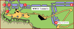 ![]() A  Hay's Level B Fordham's Accommodation C Tunnelling Memorial D Clapham Junction E Jocks Balcony F Exit to surface  | |