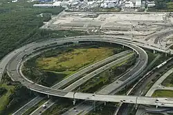The terminals are accessible by U.S. Route 1.[80] Other major roads that border the airport include Florida State Road 818, Interstate 95, and Interstate 595.[80] U.S. Route 1 includes an underpass under Runway 10R/28L.[51][80]