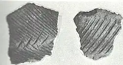 The following are descriptions of the pottery types present at the Fort Wayne mound:[1][5]
