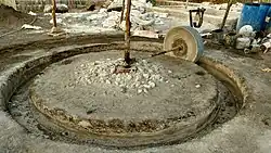 Stone was the most important material for building fortifications in medieval India. Walls were erected by one of the following three construction methods. A wall could be an earthen rampart faced with stone on both sides. The rampart was built using the earth excavated while digging the ditch, with three-quarters of it used for building a rampart and one-quarter for leveling out the surface inside the fortress and in front of the ditch. Facing the rampart with stone allowed for the erection of higher and steeper walls than those possible with a purely earthen rampart. The structure had a substantial shortcoming, however: an earthen core accumulated water, which could destroy the stone shell. Drainage channels were therefore installed along the length of the wall from top to bottom. The main binding material for construction was Lime mortar.