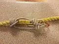 | Schwabisch hitch | A friction hitch tied around a thicker rope that can slide while unloaded, but locks when loaded. Similar to the Prusik | ||
