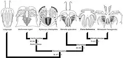 Furca bohemica is assigned to the marrellomorph clade Marrellida.[2] While historicaly placed in Mimetasteridae alongside Mimetaster, other studies have disputed this placement.[7]