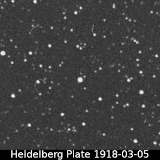 ![]() A Heidelberg Observatory photographic plate taken on 5 March 1918 showing the nova outburst of GI Monocerotis, compared with the same region photographed during the Sloan Digital Sky Survey more than 80 years later.  | |