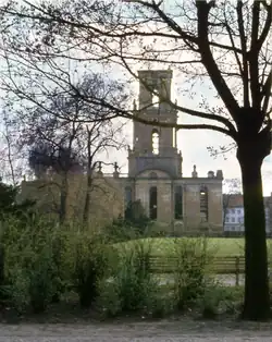 The Garrison Church (German: Garnisonkirche) was a Protestant church in the historic centre of Potsdam. Built by order of King Frederick William I of Prussia according to plans by Philipp Gerlach from 1730 to 1735, it was considered as a major work of Prussian Baroque architecture. With a height of almost 90 metres (295 feet), it was Potsdam's tallest building and shaped its cityscape. In addition, the Garrison Church was part of the city's famous "Three Churches View" together with the St. Nicholas Church and the Holy Spirit Church. After it was damaged during the British bombing in World War II, the East German authorities demolished the church in 1968. After the German reunification, the Garrison Church is currently being rebuilt as a centre for remembrance and reconciliation. The first section opened in 2024, containing a Coventry Cross of Nails chapel, an exhibition about the history of the place and a viewing platform at a height of 57 meters.