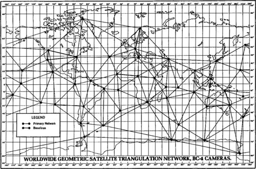 The geodetic use of satellites began around the same time. By using bright satellites like Echo I, Echo II and Pageos, global networks were determined, which later provided support for the theory of plate tectonics.