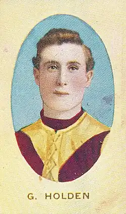 Recruited from West Melbourne, Holden was both a centreman and wingman during his career with Fitzroy, which began in 1908.[8][9] He was club champion in his debut season, winning the best and fairest award for the second time in 1915.