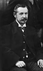 Ramsay was born at Abbotsford Place in the Gorbals district of Glasgow, the second son of William Ramsay, a master ironmonger, who originated from Perthshire and Mary Ann Burrell who was born in Woolwich.[3] After initially working with his father, the Glaswegian arrived in Birmingham 1876 to work as a clerk in a brass foundry.