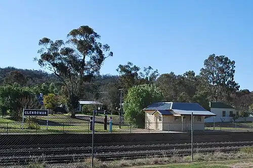 Glenrowan is a closed station located in the town of Glenrowan, on the North East line in Victoria, Australia.[1] The station is located at the highest point of the line north of Seymour, with grades of 1 in 75 in both directions.[2] In June 1880, the station was the site of what became the last stand of Ned Kelly and his gang, with a monument located at the station today.[3]