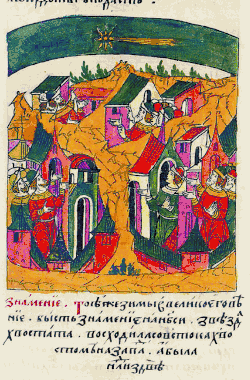 ![]() Woodcut of the Great Comet of 1556 over Istanbul  | |
