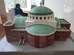 The present building was consecrated in 2000, after the congregation vacated their long-time home, the Great Synagogue on Wolmarans Street, Hillbrow in 1994, after eighty years. The Wolmarans Street synagogue came to be known as the city's mother synagogue and "the crown jewel of Orthodox Judaism in South Africa."[1] All large-scale Jewish events in Johannesburg were held in the building, and throughout its existence it was the seat of the country's chief rabbi. Northward migration by congregation members led to the synagogue closing its doors in 1994. The relocated synagogue was built on the model of the Great Synagogue, whose own architecture in turn was inspired by the Hagia Sophia.[2] Great Park Synagogue was also the original name of the synagogue on Wolmarans Street before it became the Great Synagogue.[3]
