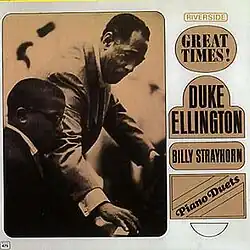 Great Times! is an album by American pianist, composer and bandleader Duke Ellington. It features duet performances with his arranger and musical partner Billy Strayhorn originally recorded for the Mercer Records label in 1950, and later released on a 10" LP called Piano Duets. The sessions were re-released by Riverside as Great Times! in 1984 with tracks from an additional session with Oscar Pettiford.