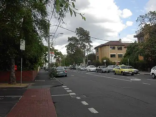 Grey Street runs south-east between Fitzroy and Barkly Streets. It lies within the original settlement area of the village of St Kilda, which was subdivided for land sales in 1842. As St Kilda grew into a wealthy and fashionable suburb during the second half of the 19th century, Grey St became lined with the mansions of Melbourne's prosperous mercantile class, attracted by the proximity of St Kilda beach and the hotels and restaurants of Fitzroy St and The Esplanade. One of leading hotels of the era, the George, stands on the corner of Fitzroy and Grey Sts. After decades of decline, it has recently been refurbished and its upper floors converted to apartments.