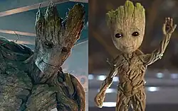 |  Forms of Groot as depicted in Guardians of the Galaxy (2014) (L) and Guardians of the Galaxy Vol. 2 (2017) (R) | |