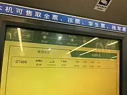 - ^ a b "深圳 --> 广州东 (10月2日 周三)". kyfw.12306.cn (in Chinese). Archived from the original on 2 October 2024. Retrieved 2 October 2024.